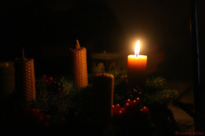 Dalším bodem mé výpravy byly Pracovní oděvy, ve kterých jsem už několikrát kupovala potřebná bavlněná trička. Cha, doběhli mě, protože posunuli dveře prodejny asi o dva metry a celý prostor je...jiný. Musela jsem se ujišťovat, že jsem ve správném obchodě. Cestou do centra města jsem se ještě stavila pro svíčky ze včelího vosku na adventní věnec, který jsem stvořila už v sobotu. Nepříjemný pán měl jen velké a dlouhé, jenže za sympatickou cenu, tak jsem jednu vzala s představou, jak ji budu doma pižlat na čtyři malé.